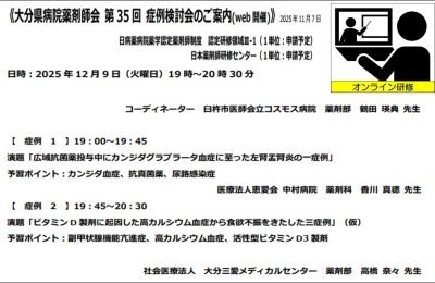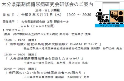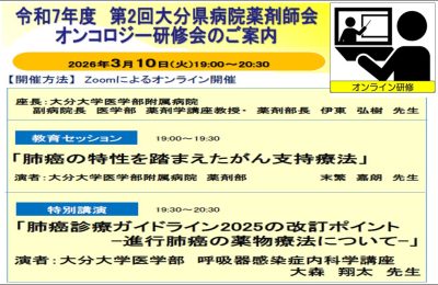 - 大分県病院薬剤師会および本研修会事務局では単位付与状況について個別のお問い合わせは受け付けておりません。HOPESSへログインし受講者本人が確認してください。